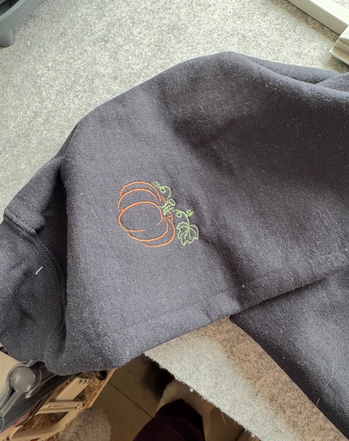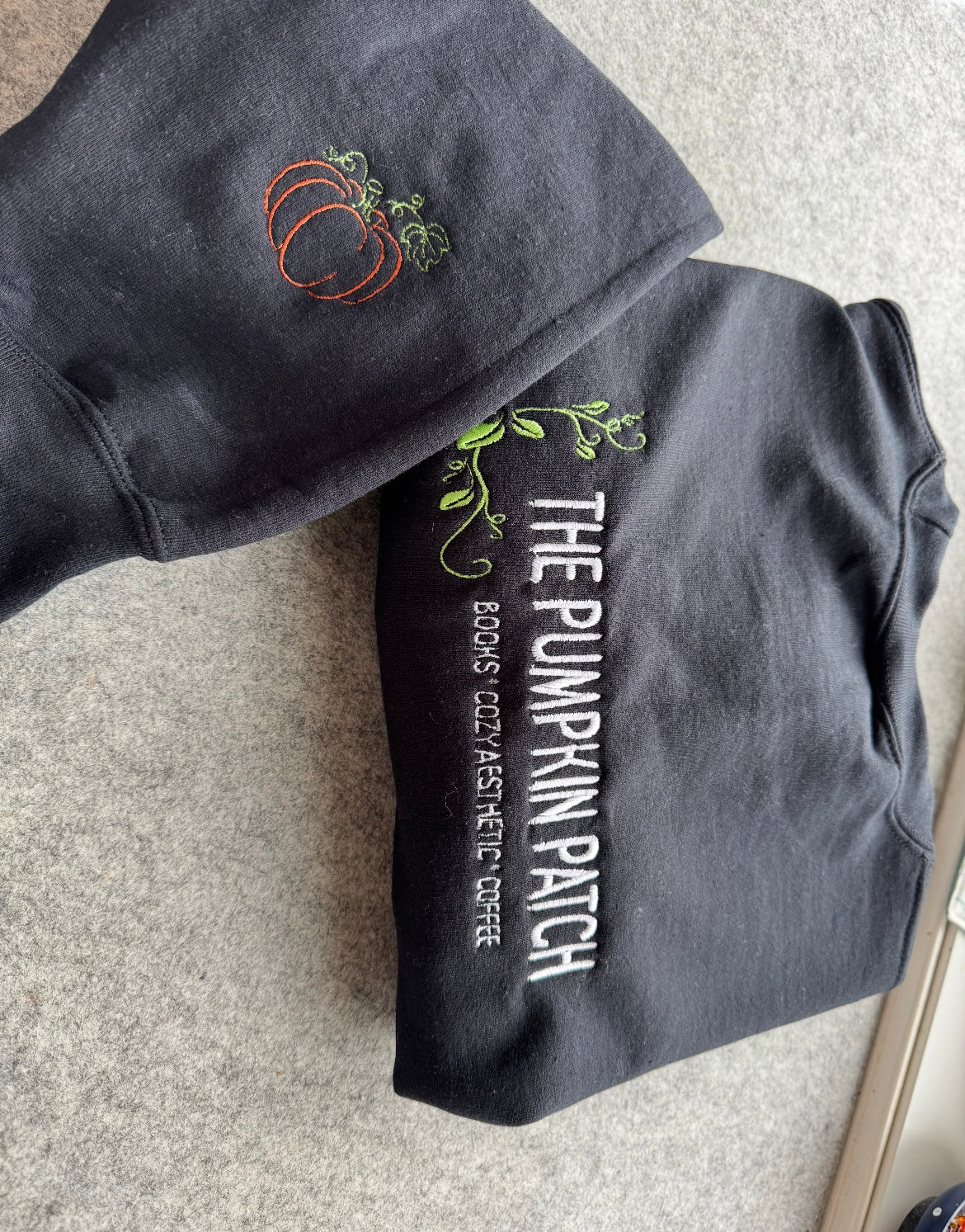 Pumpkin Patch Logo is on the back. Pumpkin is on the sleeve.